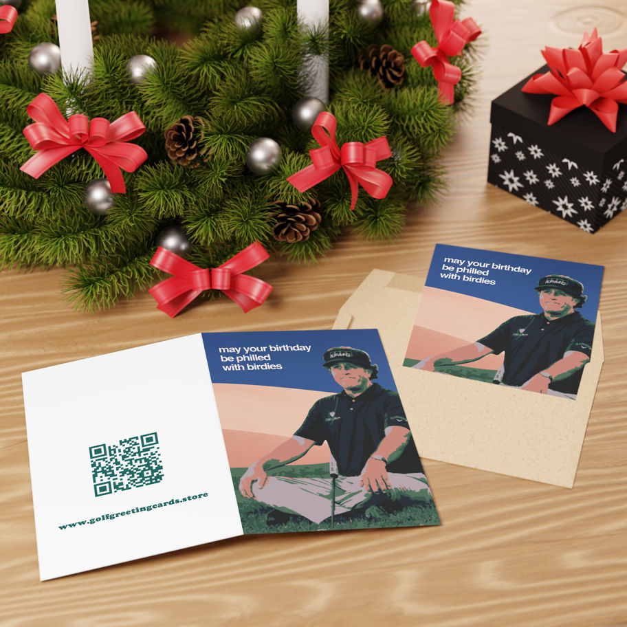 May Your Birthday Be Philled With Birdies! Celebrate the golfer in your life with this Phil Mickelson-inspired greeting card. This card will most certainly evoke a laugh (and possibly a groan!) when presented.